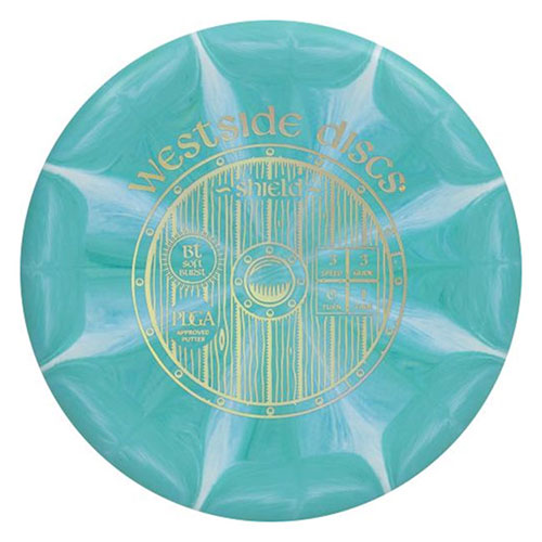 Our newest putter on the market the Shield is the next step up from the Swan. Designed with a tacky grip in the BT plastics, the Shield is a little thicker and has a small bead on the rim. It holds a stable line when throwing as an approach and a straight line into the chains while putting. Westside Shield is a PDGA approved disc.