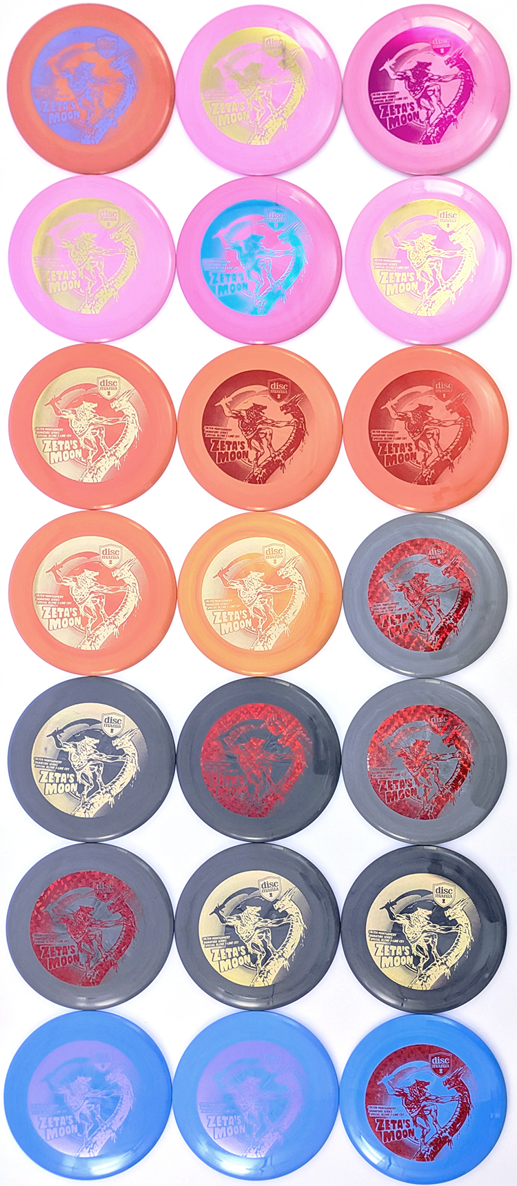 Colten Montgomery gets a fierce addition in the Discmania Signature Series line with the debut of the Zeta’s Moon CD1. This marks the first signature version of this famous reinvented mold. Long time Discmaniacs used to the old CD2 should be right at home with Zeta’s Moon. Grippy Special Blend material brings a bit straighter flight and flexible feel versus the C-Line counterpart.